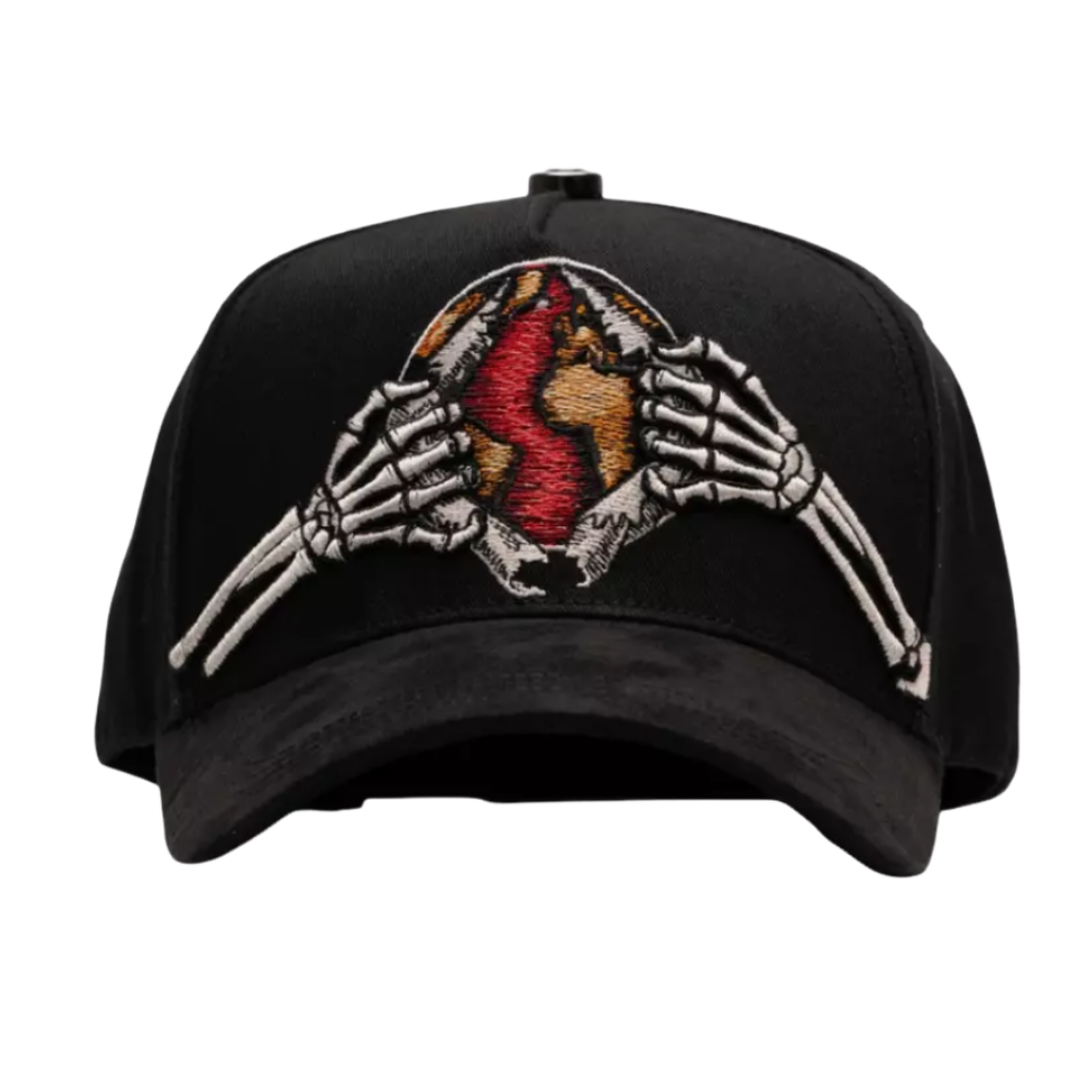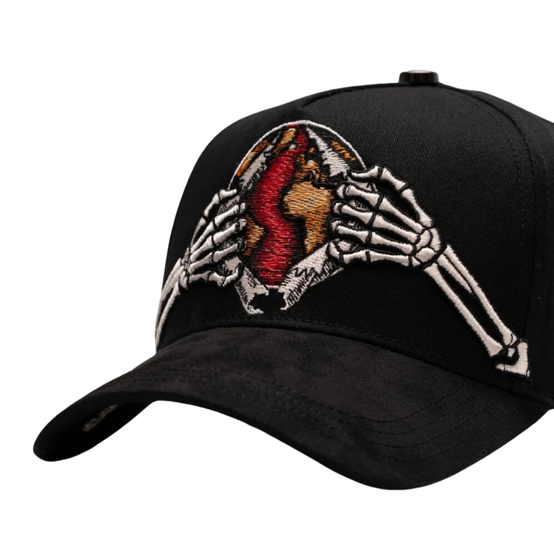 Introducing the "Torn Apart" Embroidered Cap, a striking piece designed for those who embrace unconventional style with a touch of the macabre.